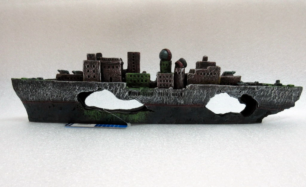 Bunte Aquarium-Dekoration, die nicht nur Kinderherzen höher schlagen lässt. Beliebt auch bei den Fans großer Kinohits der letzten Jahre, die ihr Aquarium gern in Anlehnung gestalten möchten. Dieser täuschend echte Schiffswrack peppt jedes Aquarium auf und stellt einen dekorativen Blickfang dar. Durch die Vielfalt der Löcher ideal für Fische und Krebse – zum Verstecken und Spielen. Die Dekoration hat keine scharfen Ecken und Kanten, die Verletzungsgefahr für Welse und andere Raspler ist somit absolut minimiert.