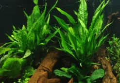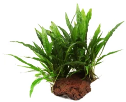 Die schöne kräftige Pflanze ist mit einer Schnur auf einem Lavastein aufgebunden. Wenn die Pflanzen angewachsen sind, kann die Schnur entfernt werden. Die ideale Bepflanzung für Barschbecken und anderen pflanzenfressenden Besatz. Die Pflanze kann mit dem Lavastein sehr schnell umgesetzt oder aus dem Aquarium entnommen werden. Also sehr praktisch beim Herausfangen von Tieren aus dem Aquarium – hervorragend geeignet für Zuchtbecken.