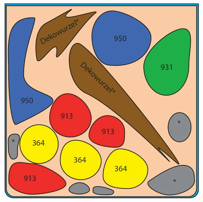 Dekorationsmaterial wie Wurzeln und Steine sind nicht im Lieferumfang enthalten und müssen zusätzlich bestellt werden.