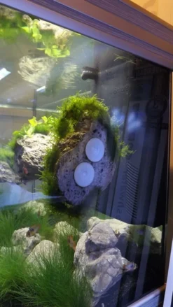 Das Gestein ist naturbelassen und kann, wenn gewünscht, auch mit Moos oder Aufsitzerpflanzen wie Anubias oder Farnen zusätzlich dekoriert werden. Felsen dienen nicht nur zur Dekoration eines Aquariums – viele Aquarienbewohner nutzen die Steine als willkommene Versteckmöglichkeit. Revierbildende Fische können sich zurückziehen und sich so aus dem Weg gehen.