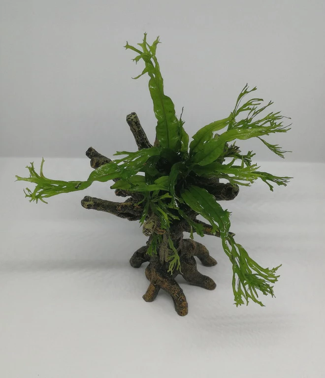 Der robuste Stamm der Deko-Wurzel hat eine schöne Verästelung und Javafarn / Microsorum pteropus Windelov bildet die Blattkrone. Urwaldbäume werden in speziellen Klimazelten kultiviert, so dass sie in jedem Aquarium sofort gut weiterwachsen. Im Aquarium bilden die Urwaldbäume dichte, sattgrüne „Blattkronen“. Für Ihre Fische bieten Urwaldbäume Reviergrenzen, Rückzugsmöglichkeiten und Laichplätze. Die Pflanze kann mit der Deko-Wurzel sehr schnell umgesetzt oder aus dem Aquarium entnommen werden. Also sehr praktisch beim Herausfangen von Tieren aus dem Aquarium – hervorragend geeignet für Zuchtbecken. Die Deko-Wurzel besteht aus unverrottbarem Kunststoff mit zahlreichen feinen Details. Die Kunststoffwurzel hat keine scharfen Ecken und Kanten – die Verletzungsgefahr für Welse und andere Raspler ist somit absolut minimiert. Im Gegensatz zu Naturwurzeln gibt die Kunststoffwurzel keine Tannine ab, somit wird das Wasser nicht verfärbt.