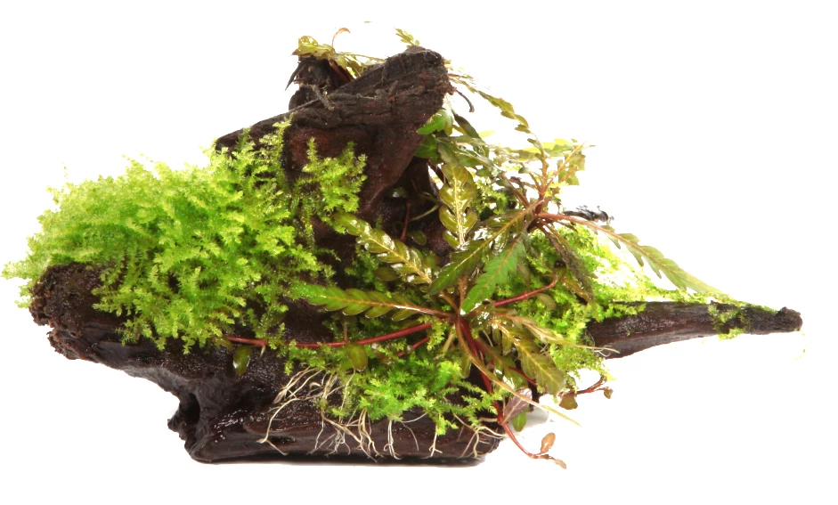 Wurzel mit Fiederspaltiger Wasserfreund und Moos / Hygrophila pinnatifida und Moos