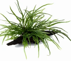 Microsorum pteropus „Trident“ ist eine ungewöhnliche Form des Javafarns, die wahrscheinlich aus Sarawak (Borneo) stammt. Die Blätter dieses kleinwüchsigen Javafarns sind sehr schmal, ähnlich dem „Needle Leaf“-Javafarn und an den Blattenden fiederartig geteilt. Dadurch entsteht eine ornamentale Wirkung. Auf einer freistehenden Wurzel aufgebunden, wirkt diese Javafarn Schönheit besonders natürlich. Aufgrund der geringeren Größe und des langsamen Wachstums ist der Pflegeaufwand sehr gering, auch bei der Beleuchtung ist die Sorte sehr genügsam und wächst in schattigen Bereichen noch sehr gut. Ideal für Aquascaping und durch die Wuchshöhe von ca. 1015 cm bestens für Nano Aquarien geeignet.